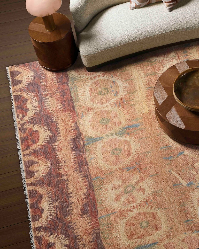 Bajo los pies, la alfombra de lana Marlton (300 x 400 cm) asienta el espacio con una rica textura y armonía tonal, reforzando la conexión entre el color y la atmósfera. Este diálogo se extiende más allá de los interiores con el Macetero de Exterior Grantham, que lleva los tonos naturales y la elegancia arquitectónica al aire libre. Finalmente, el Espejo Cassara refleja tanto la luz como el color, amplificando el espacio al tiempo que añade un sofisticado toque final.