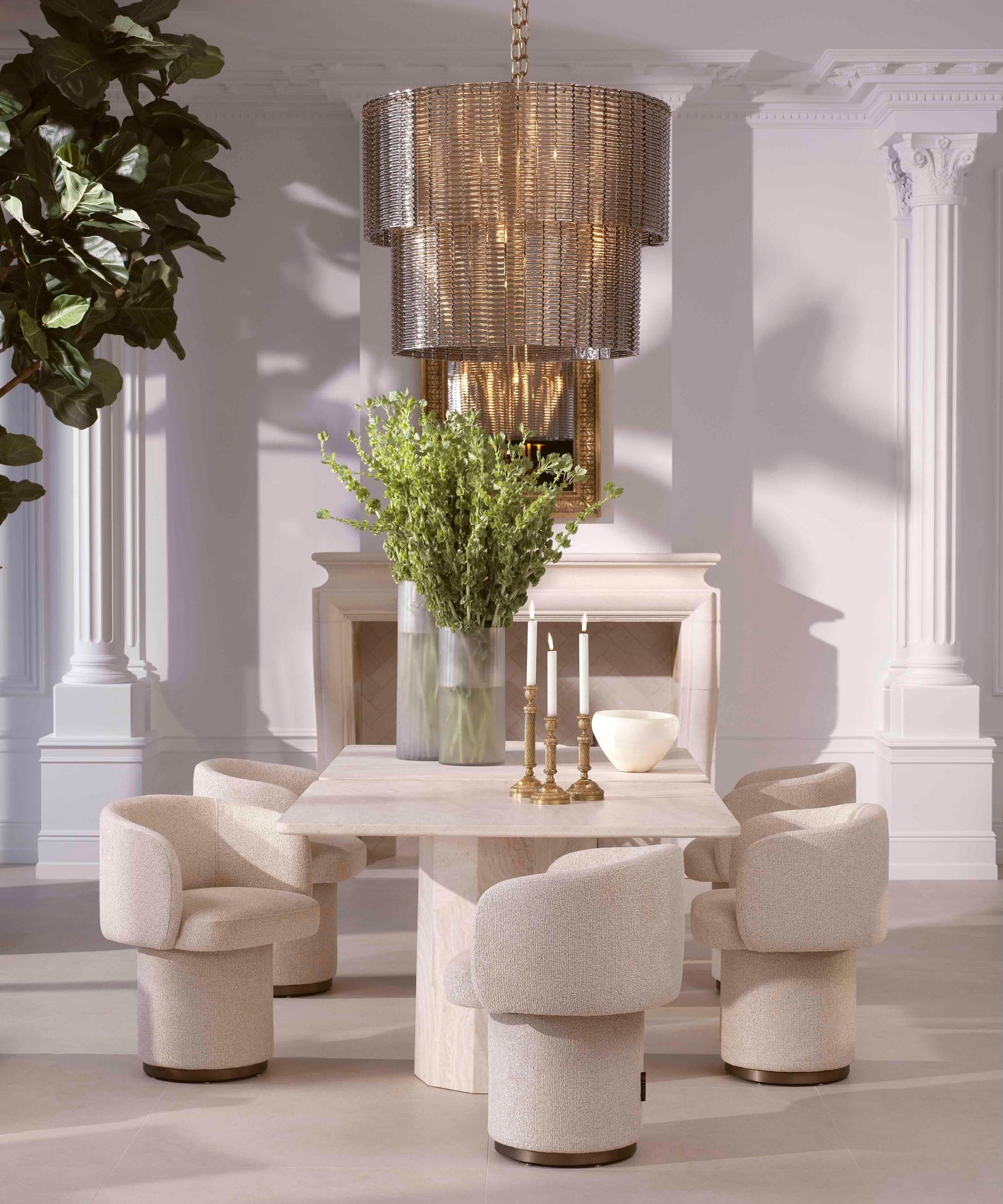 ¿Qué sillas armonizan mejor con una mesa de comedor de lujo en mármol, cristal o madera para completar el conjunto?