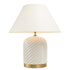 Agregue un toque de textura a sus mesa con la sofisticada lámpara de mesa Savona, con una base de lámpara de cerámica blanca con alivio en espiral.
