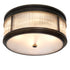 Rods of clear glass are set in the side panels of the circular drum frame to create a sparkling effect. The frosted glass diffuser at the bottom hides all bulbs from view and eliminates any glare. This flush mounted ceiling light has an antique bronze finish and is ideal for lower height ceilings.