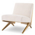 This stylish armless lounge chair is a contemporary steel take on wooden minimalist furniture from the 1950s. Featuring a brushed brass finish frame and cream-coloured bouclé upholstery, it will be a comfortable and stylish addition to your home, whether you use it as a functional seat in your living room or as an accent chair in your bedroom.