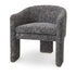 Entirely upholstered in Cambon black, it has a tub-shaped seating and three wide legs.