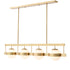 This handsome linear bar pendant features a rectangular frame with an antique brass finish that holds 5 white glass globes. It works really well over a large dining table or kitchen island.