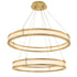 Chandelier Damien Double has more than a hint of Art Deco decadence. The circular frames with antique brass finish are inset with frosted glass rods and just waiting to reflect the light in a hundred different ways. The rings can be hung in any desired position by adjusting the length of the cables. Ideally suited to modern and 1920s and 1930s homes.