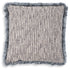 This square cushion has rounded corners and a soft Mademoiselle blue cover with blue and white fringes. It will make your bed or sitting area inviting in an instant.