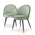 Each chair is characterised by a seating and backrest in savona pistache green upholstery with black piping, tapered black legs and brass caps. Team up different chairs from this series for an opulent style!