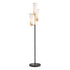 The design of Floor Lamp Dino evokes the retro aesthetics of the 1950s and 1960s. Made of white glass and adorned with an antique brass rim, three cone shaped architectural shades complete the Mid-Century Modern look. The sleek metal stem is provided with a black finish and mounted on a round base of black marble.