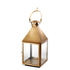 With a burning candle inside, this lovely lantern will spread a soft and warm glow in your lounge or bedroom. The hurricane has an aged brass finish, four clear glass panels and a handle (candle not included).