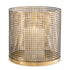 This gorgeous candle holder with a lattice work design and vintage brass finish helps to diffuse light around your room.