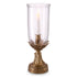 The "Hurricane Vitruvian" brilliantly blends form and function in vintage brass finish with clear glass.