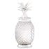 This elegant pineapple container is made of glass and has a silver-plated crown and base. Both a dramatic accent and a handy storage pot.