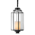 Crafted from metal in a matte black finish, this craftsman-style design showcases an octagonal frame with clear glass panels around a cilindric cream lampshade.