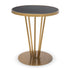 Replete with simplicity and minimalism, this striking round side table will add character to your interior decor without overwhelming your aesthetic. Featuring a brushed brass finish, its tapered frame rests on a round base. The table top is made of honed black marble.