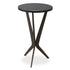 The sleek base has a bronze finish that goes well with the round top from black granite.