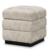The Stool Valmont in Creststone beige features luxurious fabric atop an ebony finish base, combining comfort with practical storage.