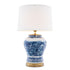 The traditional oriental Chinese Blue Table Lamp features an authentic Asian baluster vase body decorated with a finely detailed landscape in Ming blue and white.
