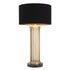 Sitting on a black marble base, this modern table lamp radiates an understated charm. Its airy cylindrical base consists of metal rods with an antique brass finish. The fixture comes complete with a round black drum shade with a gold-coloured inner for extra warm light.