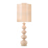 It features a distinctive travertine base that looks like a stack of four vases in descending sizes. Finished in antique brass and supplied with a linen mix shade, this lovely table lamp will top off your décor.