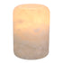 Since this votive is made entirely by hand from alabaster, each piece is totally unique. The semi-transparent alabaster lets a soft warm glow from the candlelight shine through.